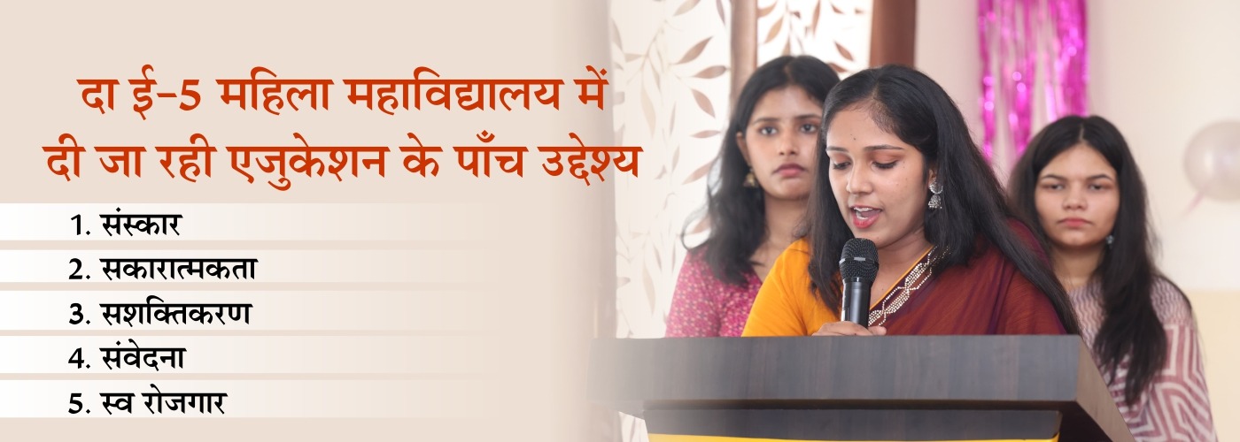 The E5 College For Women, Garhi, Hansi, Hisar is affiliated to Guru Jambheshwar University of Science and Technology It is a matter of great privilege for us to share our thoughts and feelings with you. The college offers bachelor degree course in the field of Arts, Medical, Non-Medical The E5 College For Women Garhi, Hansi, Hisar is a unique college designed to meet the challenges of today and tomorrow. The college provides healthy academic and cultural environment like colleges of Metro Cities,i.e., Delhi & Chandigarh. The college provides an exemplary education to all our students who learn by actively discovering, integrating and applying knowledge in a dynamic and global community. Our holistic approach to learning promotes the development of mind, body and soul in an academically stimulating environment for every student.
